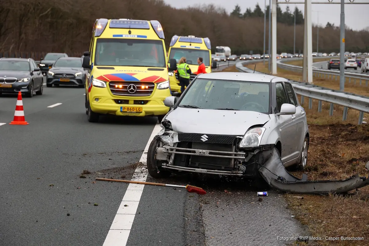 LAREN – Zaterdag rond het middaguur is op de A27 bij Laren een auto tegen de linker vangrail gereden.