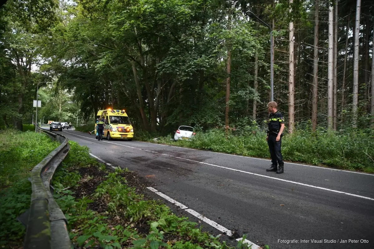 De automobilist kwam uit de richting van Baarn toen deze in de eerste bocht te ver doorstuurde en tegen de vangrail botste. De automobilist stuurde vervolgens terug en kwam aan de andere kant in de berm tot stilstand.