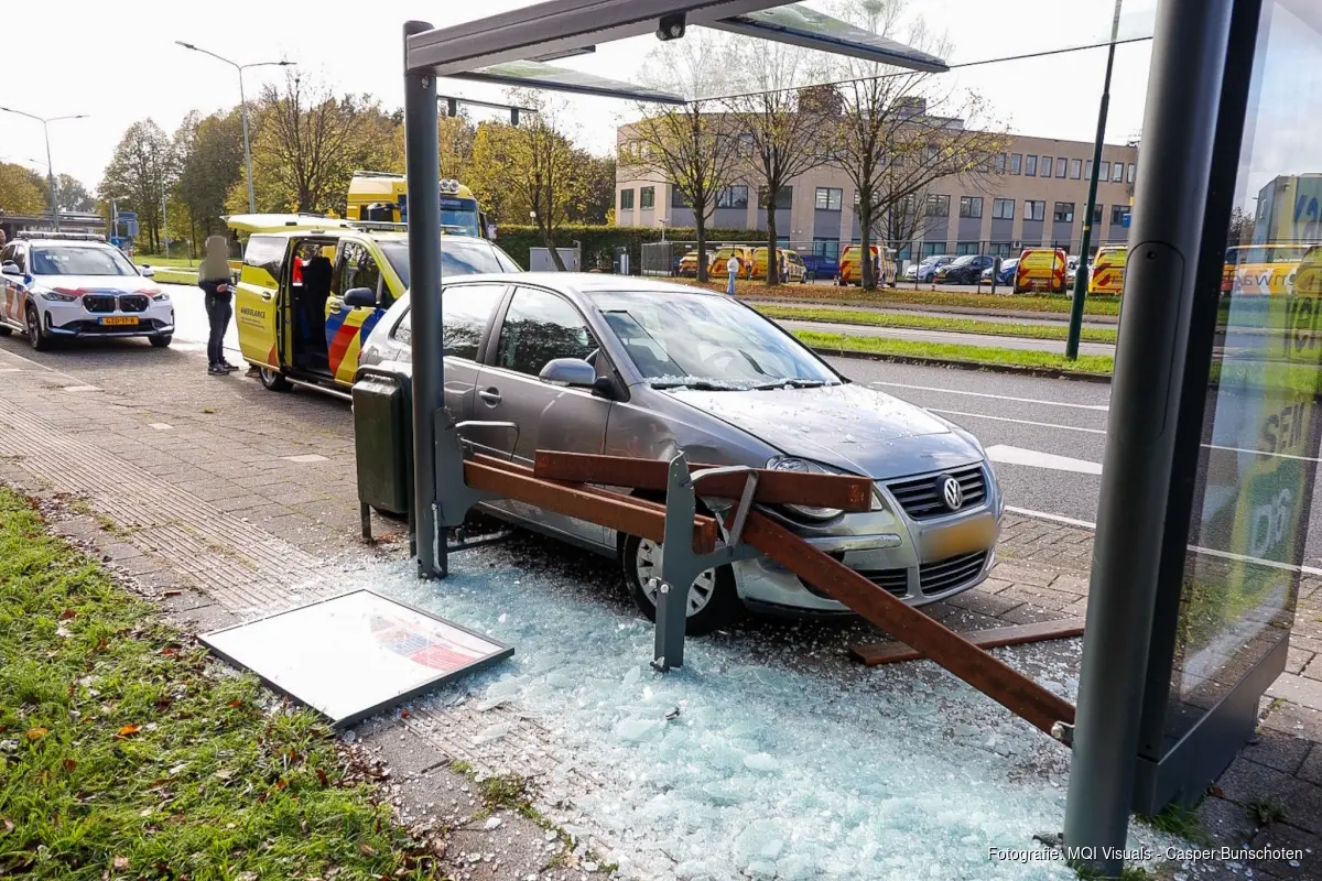 NAARDEN - Woensdagmiddag rond 12:30 uur is een automobilist door nog onbekende oorzaak tegen een bushokje gereden aan de IJsselmeerweg in Naarden.