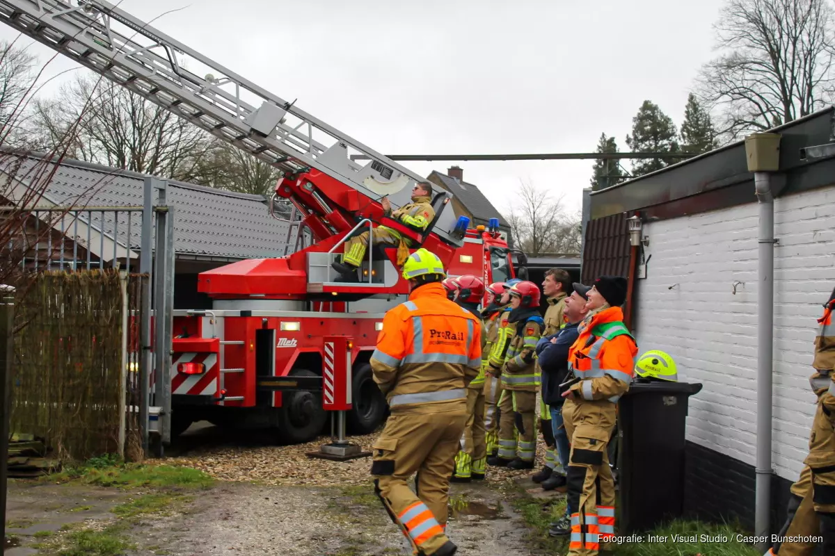 De brandweer heeft de boom vakkundig weggehaald zodat de boom niet op het spoor kan vallen.