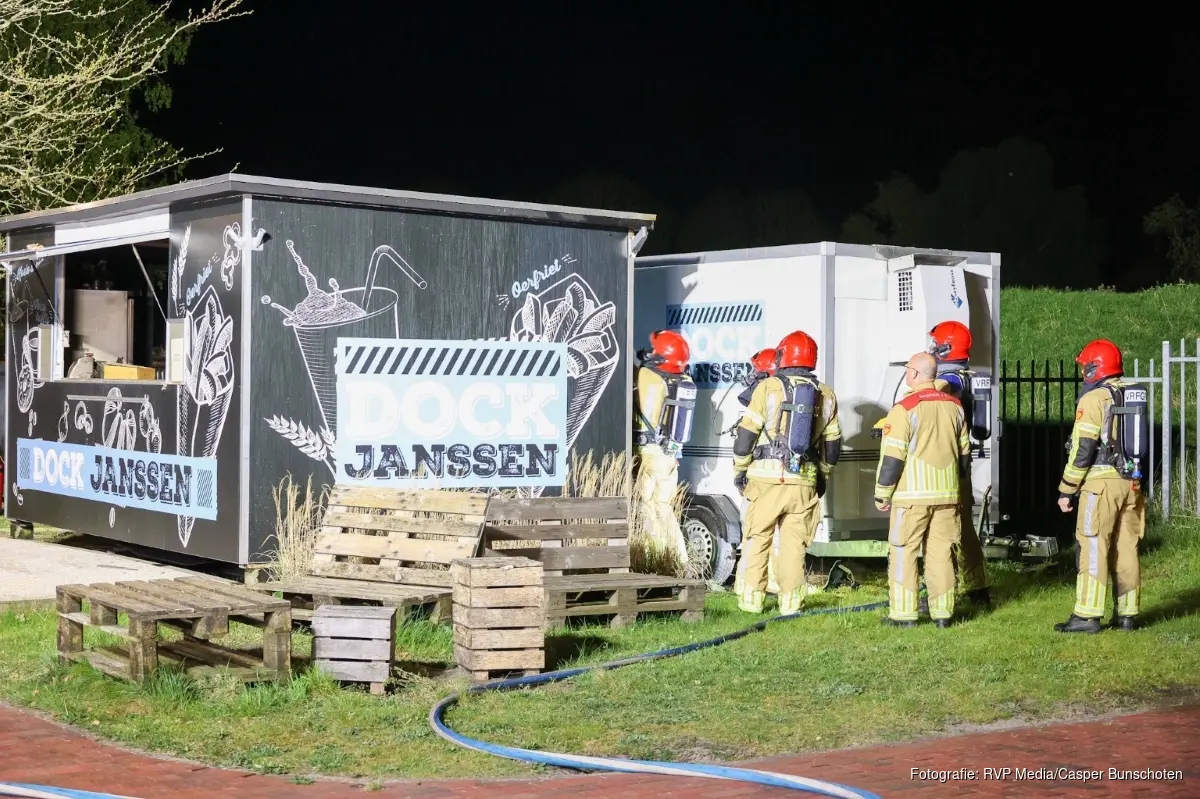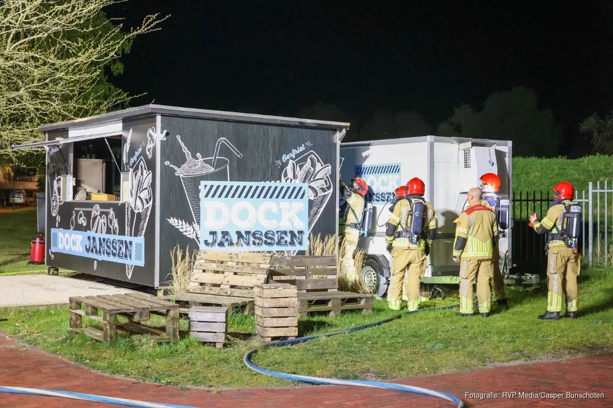 De brand bleek te zijn ontstaan op het terrein van de jachthaven en werd snel opgeschaald naar middelbrand.
