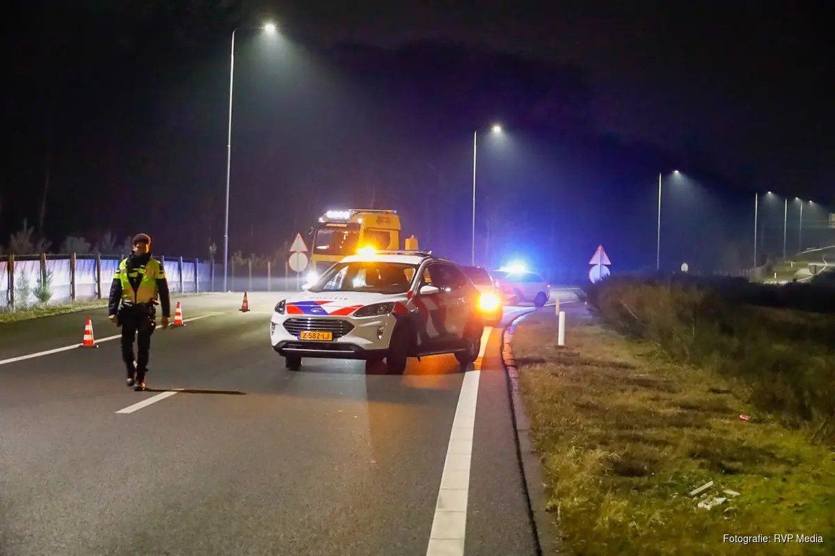 De afrit is vanwege het ongeluk afgesloten. Een bergingsbedrijf zal de bestelbus overeind zetten en afslepen.