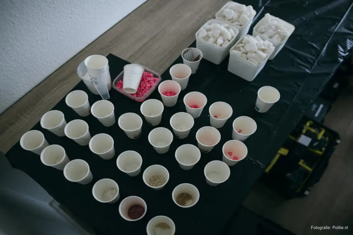Tijdens de doorzoeking van de woning van de 36-jarige verdachte vond de politie diverse soorten drugs, waaronder cocaïne, amfetamine, mdma, 2C-B en het geneesmiddel ketamine. De Hilversumse woning zou worden gebruikt als een inpaklocatie voor de verdovende middelen. In een van de kamers stond een stellingkast met daarin plastic bakken gevuld met ongeveer 25 kilo harddrugs. De drugs werden daar gesorteerd in kartonnen drinkbekers en in enveloppen gedaan. In een andere kamer op deze locatie vond de politie enveloppen, speelgoed en speldozen, vermoedelijk bedoeld om de drugs in te verstoppen en vervolgens per post naar het buitenland te versturen. De verkoper gaf op het darkweb aan wereldwijd te kunnen versturen.