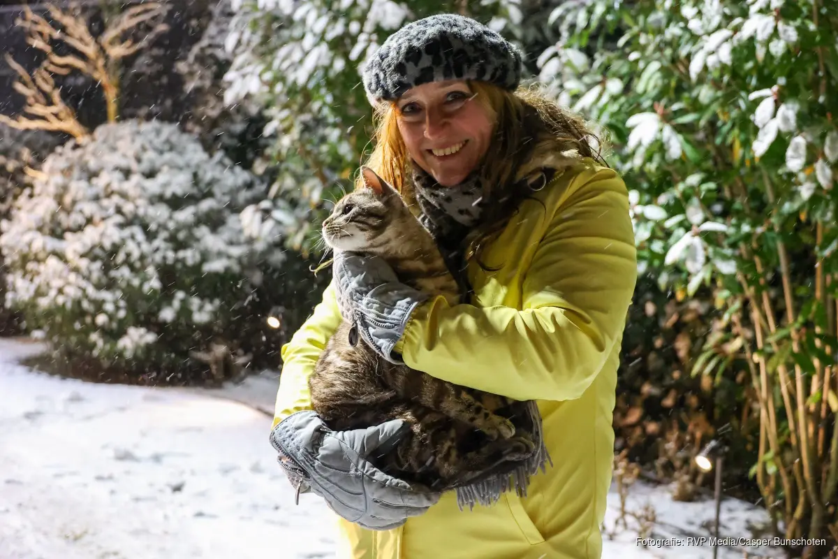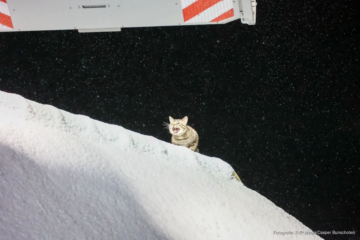 Gelukkig zagen de eigenaren de kat zondagavond op het dak zitten. Waarschijnlijk ook doordat er sneeuw is gevallen, durfde de kat niet zelf meer naar beneden.