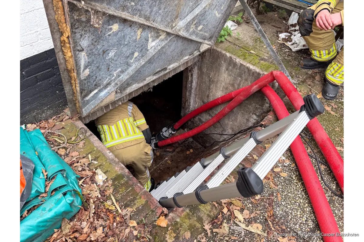 De brandweer is momenteel bezig het water met twee pompen weg te pompen. Over de omvang van de schade door de lekkage is nog niets bekend.