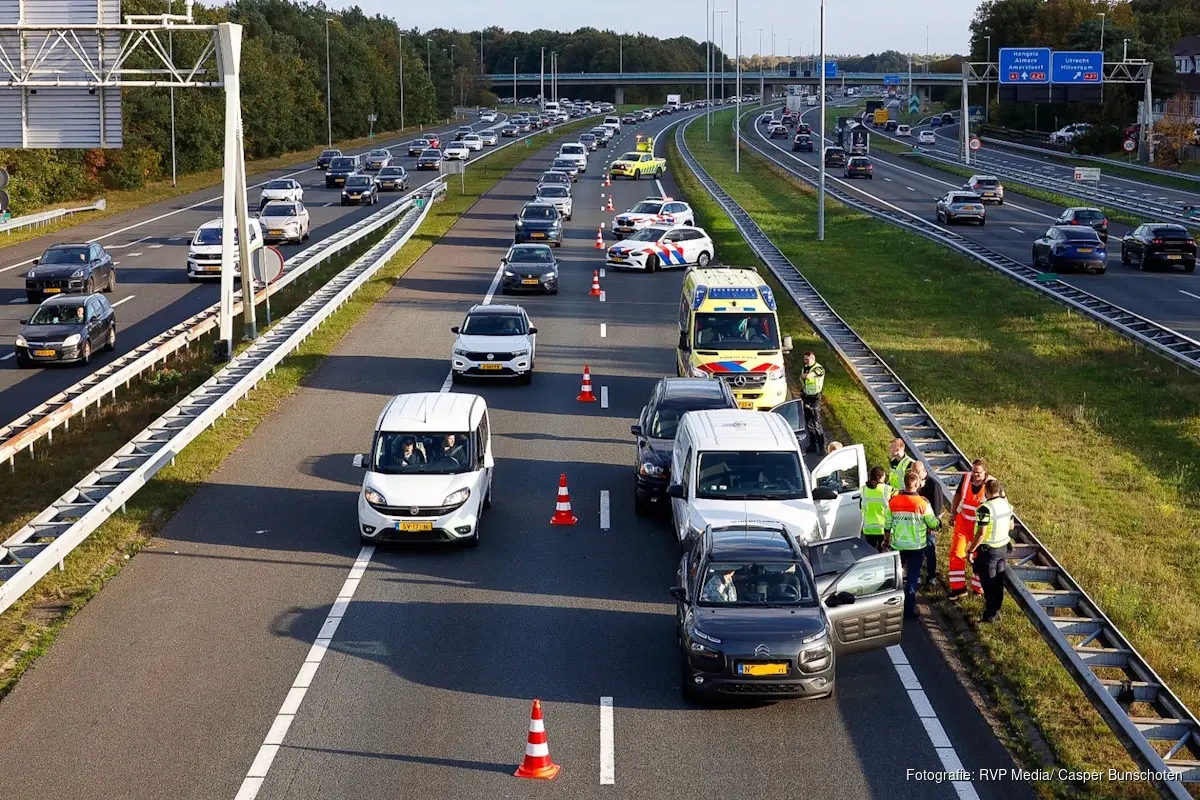 Door het ongeval ontstond in de richting van Amsterdam een file. Een van de bestuurders is ter plaatse in de ambulance gecontroleerd, maar hoefde niet mee naar het ziekenhuis.
