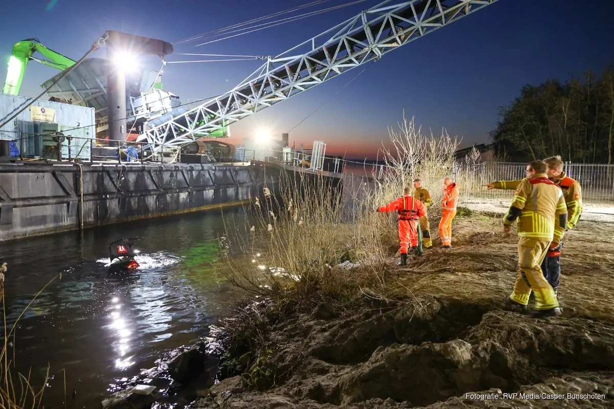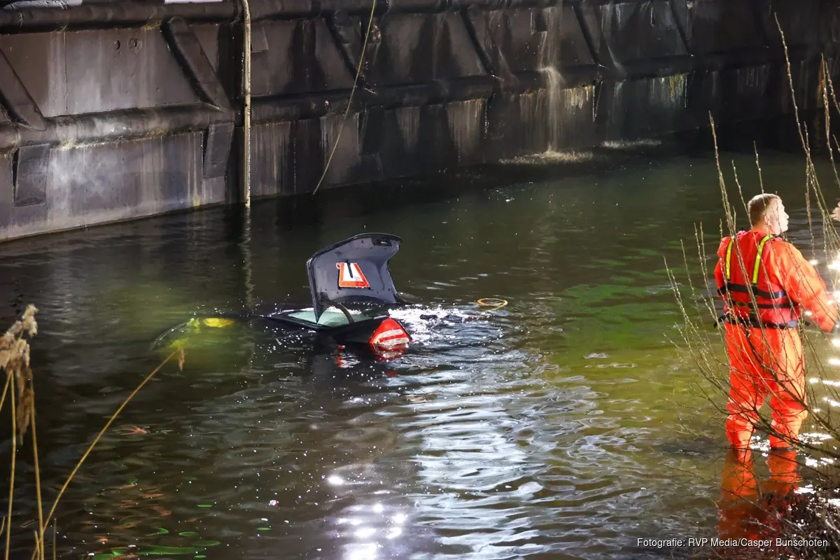 Meerdere hulpdiensten werden opgeroepen nadat voorbijgangers een auto hadden zien liggen in het water. De brandweer heeft ter plaatse het water en de auto doorzocht maar daar werd niemand aangetroffen.
