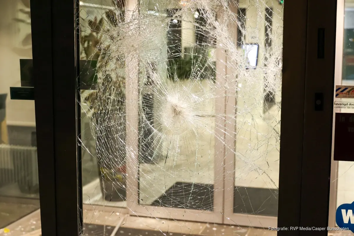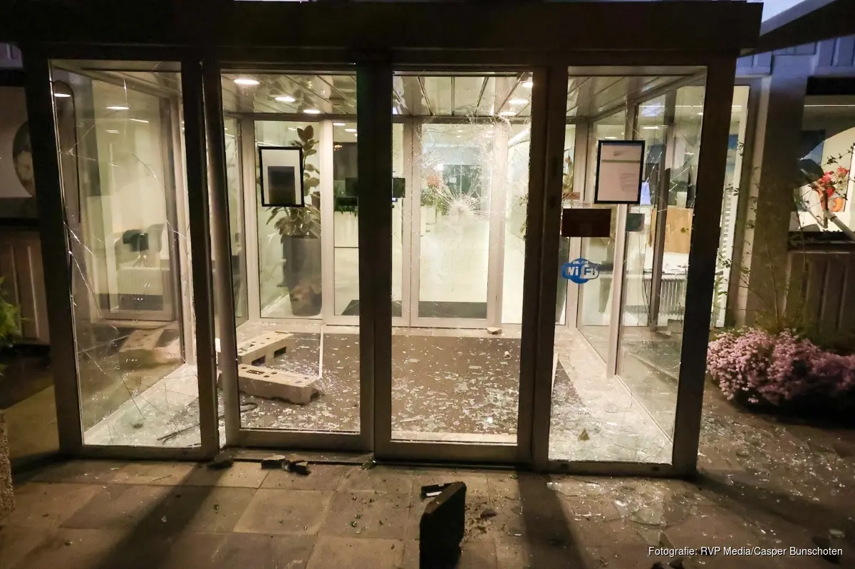 Meerdere ramen en de deuren bij de ingang zijn volledig vernield. Er zijn stoeptegels uit de grond getrokken aan de overkant van de straat en deze zijn door de ramen heen gegooid net zoals verkeersborden. Ook zijn de hekken omver getrapt die voor het pand stonden.