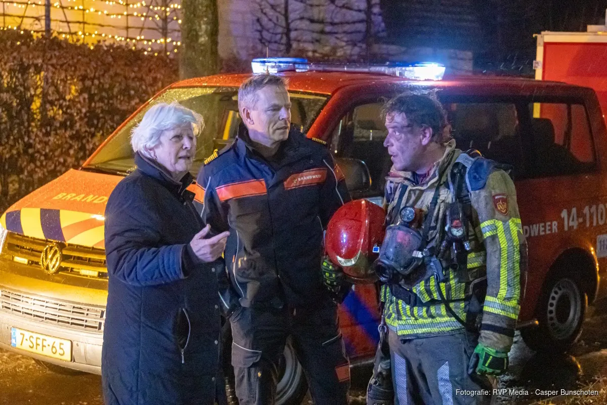 Update 06.00 uur: Pas rond 0045 uur was de brand meester. Wethouder en 1e locoburgemeester Anne-Marie Kennis van de gemeente Blaricum kwam polshoogte nemen bij de brand en sprak ter plekke met brandweerlieden.
