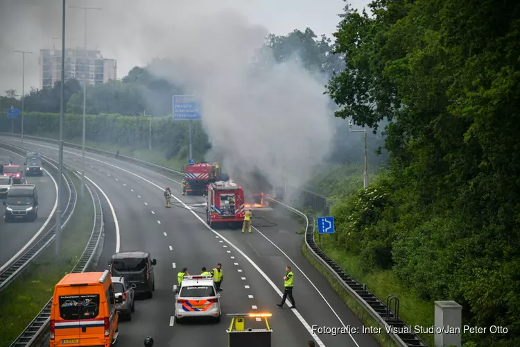 Tijdens het blussen van de brand zijn beide rijstroken afgesloten, met een flinke verkeershinder tot gevolg.