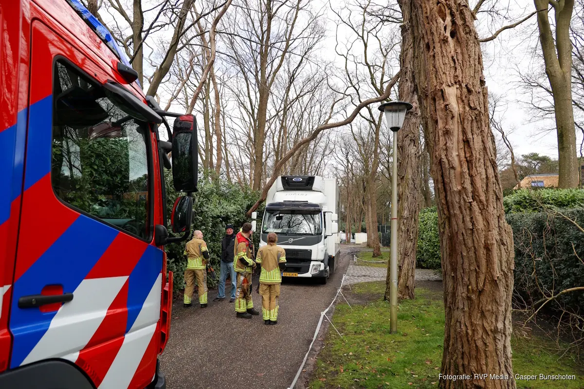 BLARICUM – Aan de Oranje Nassaulaan in Blaricum is woensdagmiddag een vrachtwagen tegen een boom gebotst die gevaarlijk over de weg hing.