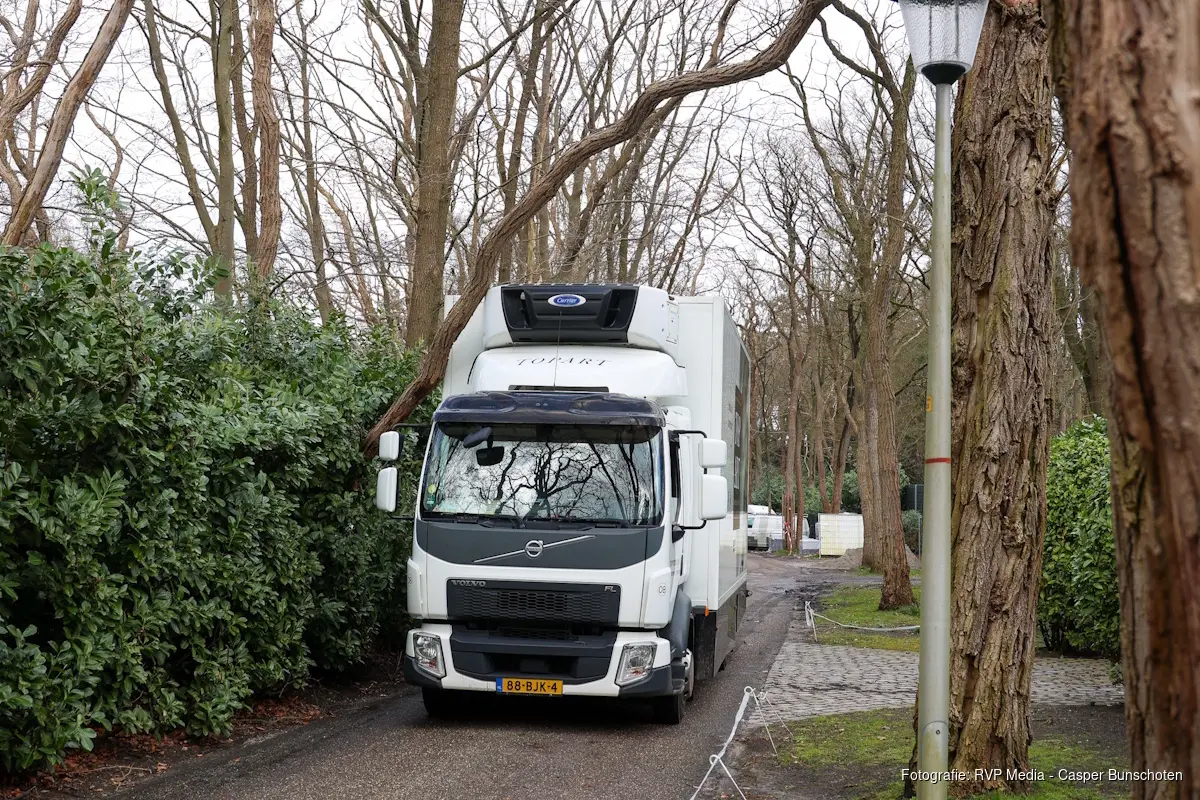 De schade bleef beperkt tot de bovenkant van de vrachtwagen. De brandweer kwam ter plaatse en heeft de dode boom met een spanband aan een andere boom bevestigd, zodat deze niet kon omvallen.