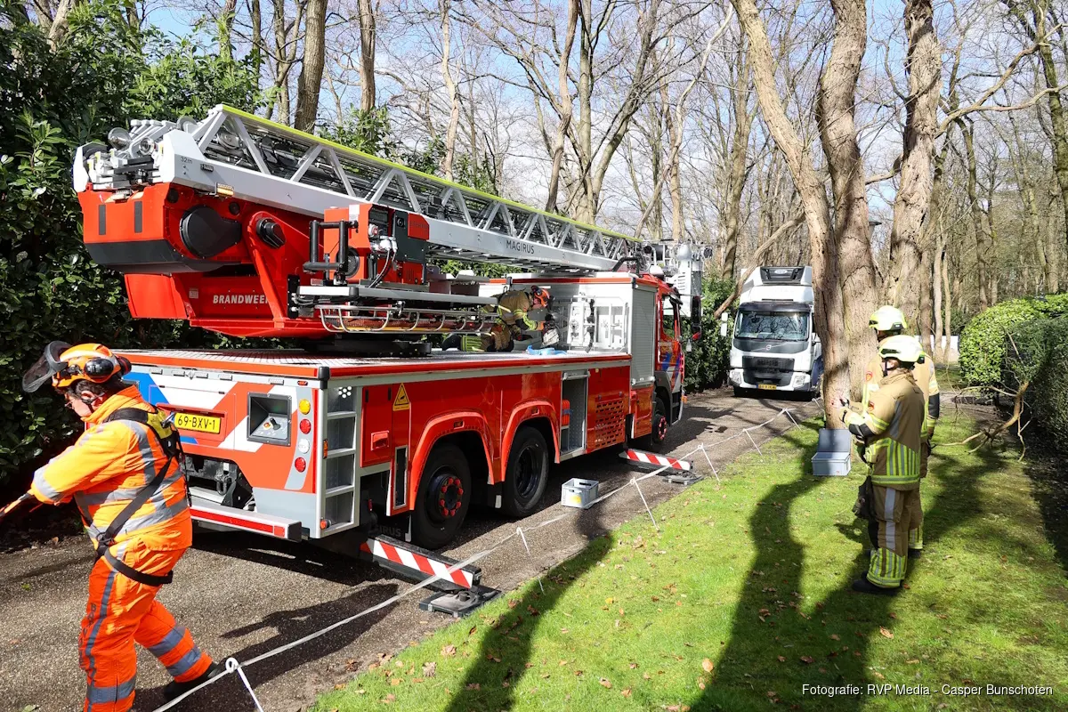 De vrachtwagen kon vervolgens veilig achteruitrijden zonder verdere schade te veroorzaken. Nadat het voertuig was verplaatst, heeft de brandweer de boom in stukken gezaagd.