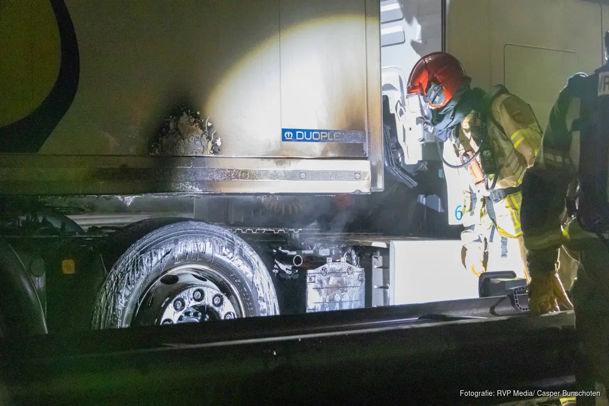 De chauffeur ontdekte tijdens het rijden brand tussen zijn vrachtwagen en de trailer. Hij zette meteen de vrachtwagen aan de kant. De brandweer was snel ter plaatse en wist erger te voorkomen. De brand woedde achter de cabine van de vrachtwagen.Hoe de brand precies is ontstaan is niet helemaal duidelijk. De chauffeur raakte niet gewond en kwam met de schrik vrij.