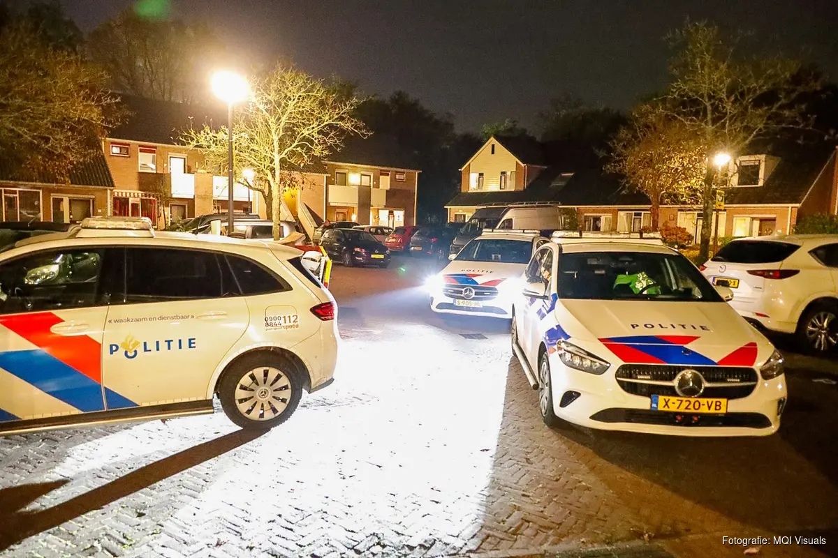 Straat wordt afgezet voor onderzoek. De recherche is ter plekke en de politie doet buurtonderzoek.