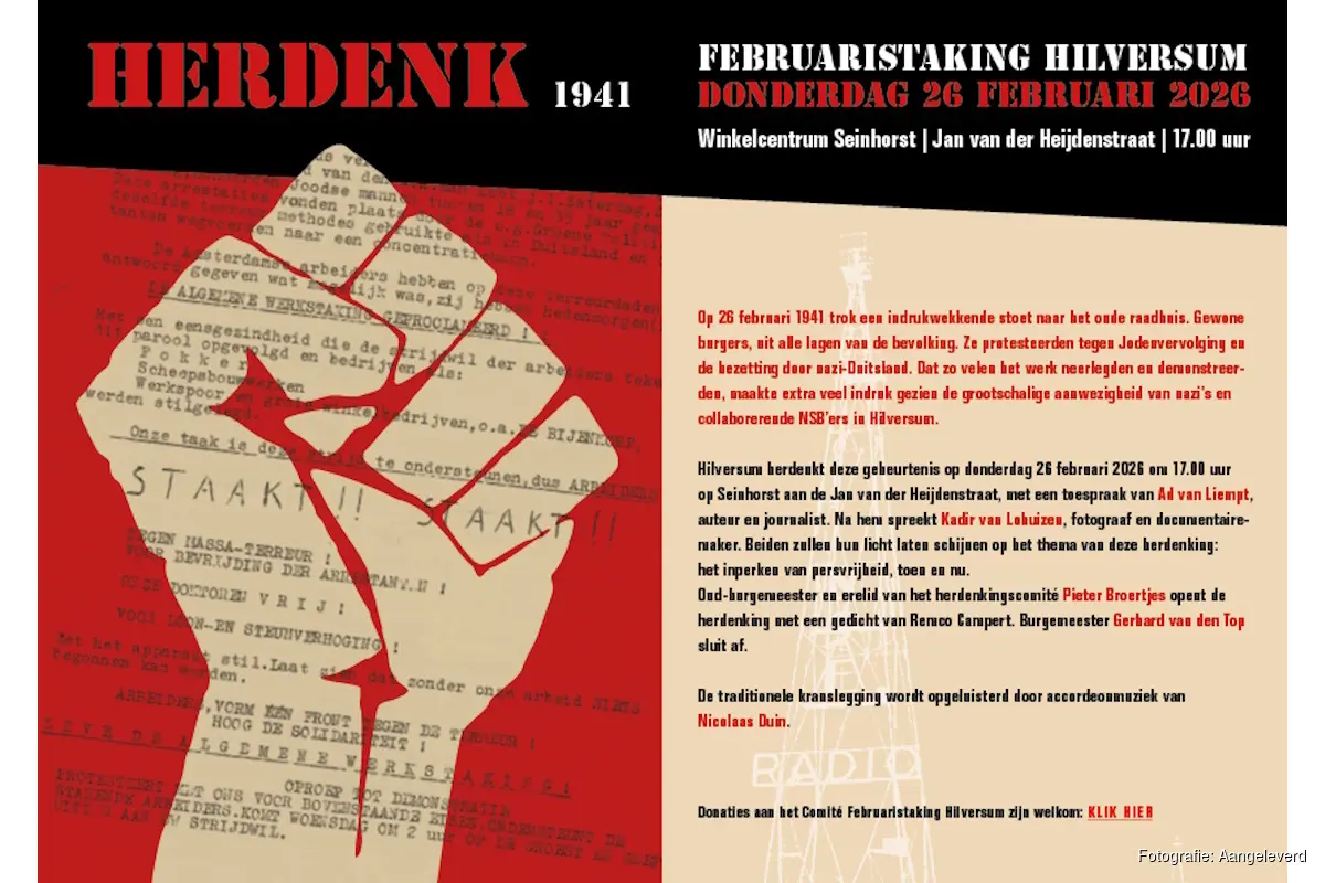 Hilversum herdenkt deze gebeurtenis op donderdag 26 februari om 17.00 uur op Seinhorst bij het NSF-kunstwerk aan de Jan van der Heijdenstraat, met een toespraak van Ad van Liempt, auteur en journalist. Na hem spreekt Kadir van Lohuizen, fotograaf en documentairemaker. Beiden zullen hun licht laten schijnen over het inperken van persvrijheid, toen en nu.