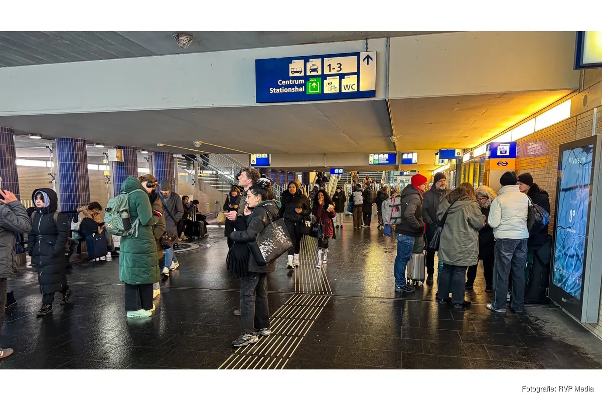 HILVERSUM - Door hevige sneeuwval zitten momenteel ongeveer honderd reizigers vast op het treinstation van Hilversum. Het treinverkeer van en naar het station is verstoord, waardoor veel passagiers hun reis niet kunnen vervolgen.