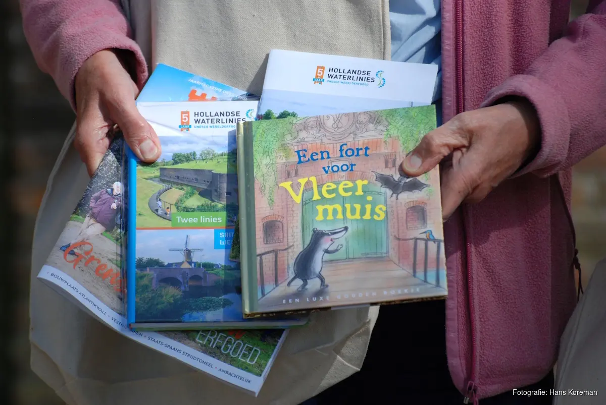 Een primeur was de presentatie van een Gouden Boekje over de Hollandse Waterlinies met de titel ‘Een fort voor een vleermuis’. In dit kleurrijke kinderboek, met illustraties en teksten van Gitte Spee, raakt een vleermuis haar fort kwijt en beleeft ze samen met Das vele avonturen. Alle vrijwilligers kregen de uitgave cadeau. Vandaag, vrijdag 17 april, wordt het boekje, tegelijk met de opening van de buitenexpositie, officieel gepresenteerd op Fort de Gagel.