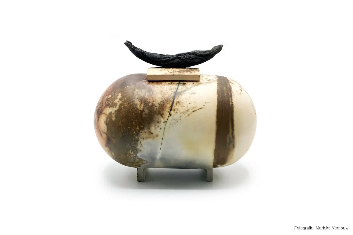 “Zo mooi om weer een nieuwe stooktechniek te leren”, vertelt zij enthousiast. “Sagger-firing levert echt bijzondere resultaten op en vanzelfsprekend is elke urn weer anders. Dankzij deze methode ontstaan minder afzettingen op het oppervlak en er kan heel creatief extra materiaal aangebracht worden.” Daarnaast biedt Marieke een prachtige collectie raku gestookte urnen aan in verschillende tinten in het sfeervolle atelier aan de Zaan.